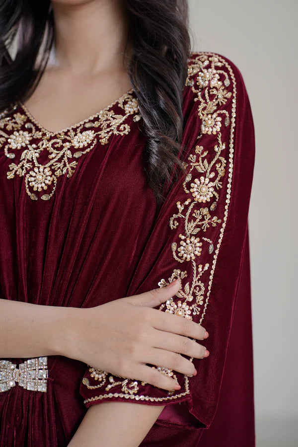 The Aure Embroidered Kaftan "Mehr-e-Maroon"